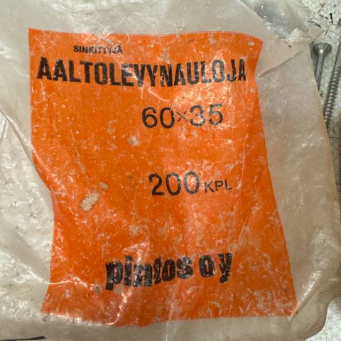 Kateruuveja, ohutlevyruuveja, yleisruuveja, viimeistelynauloja 1.6 ja 1.2 osa täynnä ja osasta otettu vähän