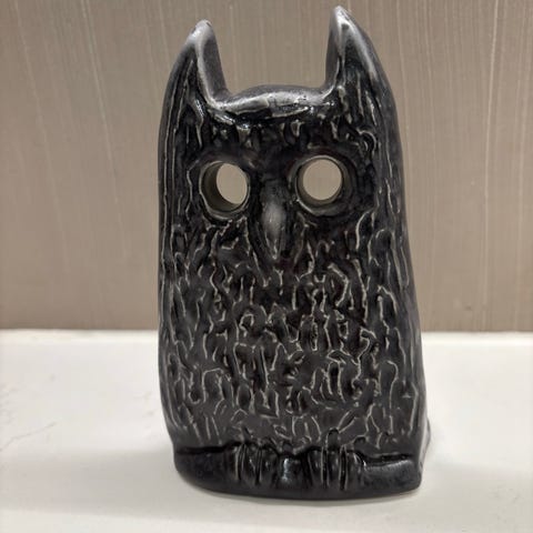 Lasi lintufiguuri, kaksi eriväristä yksilöä. Toinen figuuri on vihreä ja toinen vaaleanpunainen, molemmissa on pitkänomainen nokka ja pyöreä vartalo. Materiaalina on värillinen lasi, jossa näkyy valon heijastuksia ja kuvioita. Myydään yhdessä kuvien mukaisina tai erikseen, ilmoituksessa hinta yhdessä.