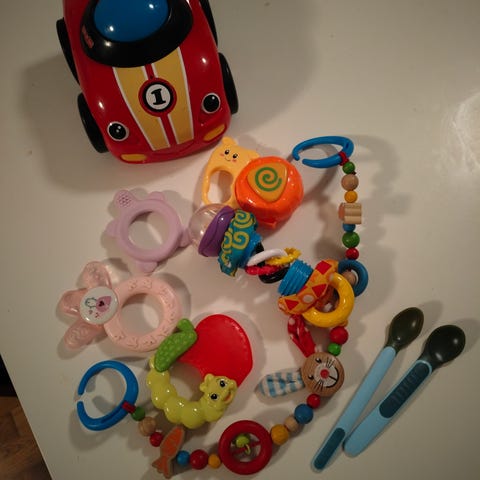 Fisher-Price vauvan lelut sisältävät muovisen elefanttilelun ja pehmokirjan. Elefanttilelussa on värikäs, pyörivä pallo vatsassa sekä ripustuslenkki, jolla lelun voi kiinnittää esimerkiksi vaunuihin tai turvakaukaloon. Pehmokirjassa on useita sivuja, joissa on värikkäitä eläinhahmoja ja erilaisia pintoja tunnusteltavaksi. Molemmat lelut on suunniteltu pienille lapsille motoristen taitojen ja aistikokemusten tukemiseen.