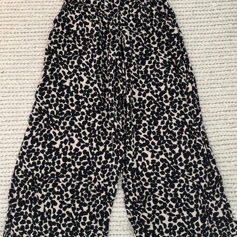 Leopardi kuvioiset farkut koko 34. Housujen mittoja; vyötärö 34cm, lantio 42cm, sivupituus 95cm, sisäpituus 75cm, lahkeen leveys 23,5-12.5cm, haarakorkeus etu 19 ja taka 31cm.
