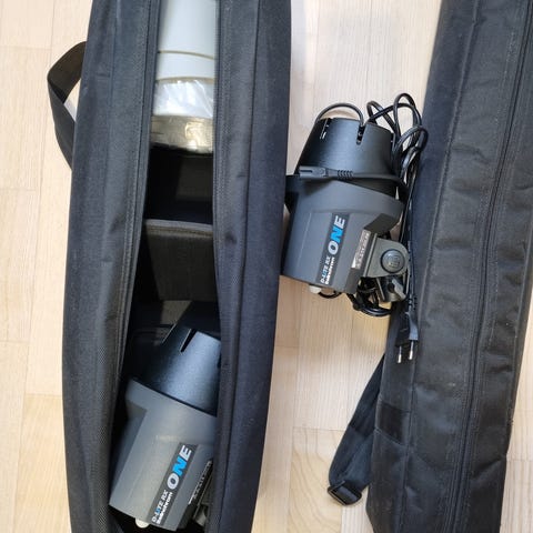 Pakettiin kuuluu myös kaksi Kaffebrus softboxia valoille.