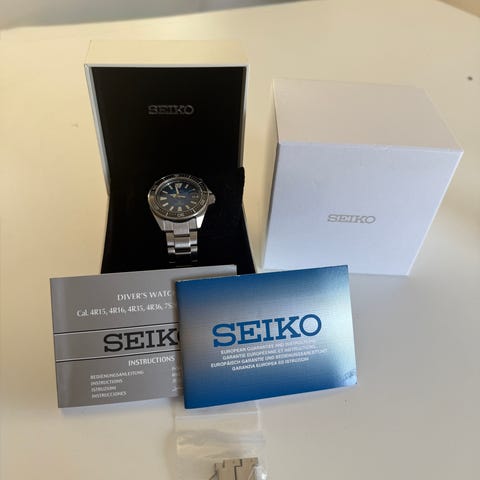 Vähälle käytölle jäänyt Seiko seuraavalle. Kaikki laatikot ja liput ja laput tallella. Rannekkeessa pientä pöytänaarmua. Nouto Sastamalasta, tai postitus ostajan piikkiin.