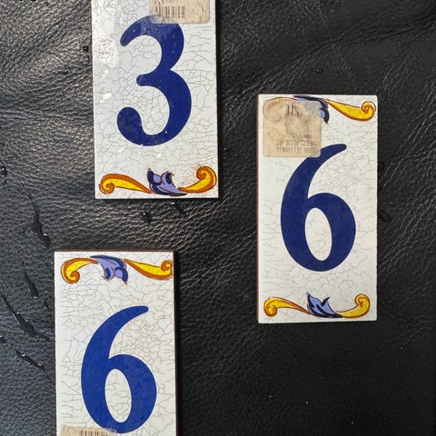 Kuusi käsin maalattua hevoslaattaa, maalattu ja poltettu pukkilan laattoihin