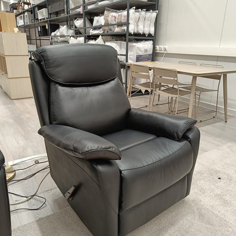 Nyt olisi poistokappaleena Sähkökäyttöinen Lorenzo mekanismituoli beigellä nahalla.