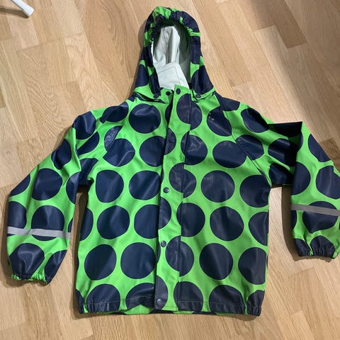 Vähälle käytölle jäänyt sadetakki, vetoketju toimii, irroitettava huppu, heijastimet ehjät.