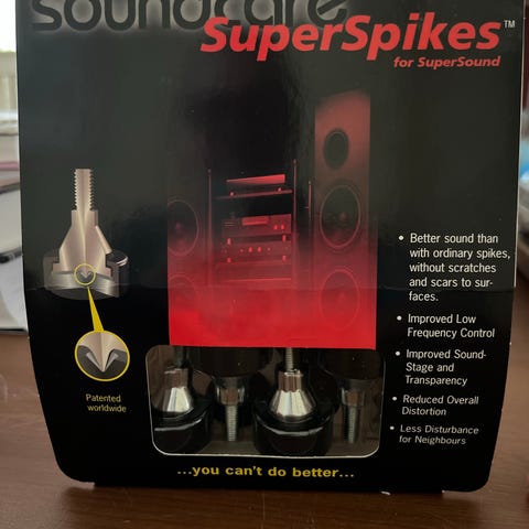 Uusi, avaamaton Soundcare Superspikes -paketti. Kaiutinjalat. Ostettu Marrksoundilta. Toinen samanlainen omana ilmoituksenaan. Nouto/ toridiili.