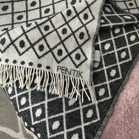 Uusi ja käyttämätön, hieno Pentikin Laituri-torkkupeitto, 100% villaa. Harvinainen Koli Ski-merkki viltin reunassa. Koko 130x170cm.