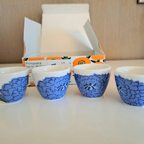 Käyttämättömät laatikossaan säilytetty Primavera-munakupit, Iittala