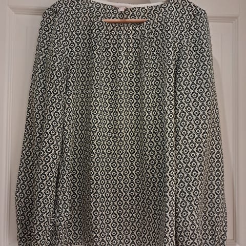 Naisten lyhythihainen paita, jossa pyöreä pääntie. pusero on musta‑harmaa ja siinä on kauttaaltaan kuviollinen pinta. Materiaali on 100 % polyesteriä. Sopii arki- ja vapaa-ajan käyttöön. Koko 36 Sopii juhlapuseroksi, jona sitä olen käyttänyt mustan hameen tai housujen kanssa, Enää ei mahdu.