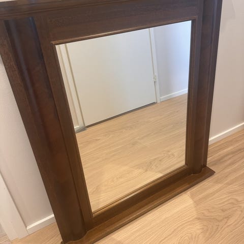 Tämä kuvan kaunis peili saapui myyntiin. Vanhempaa tuotantoa. Peili selkeä. Pari ajan tuomaa jälkeä erottuu. Kehykset ehjät, pieni puutos alareunassa. Ripustin löytyy. Koko 61x116 cm.