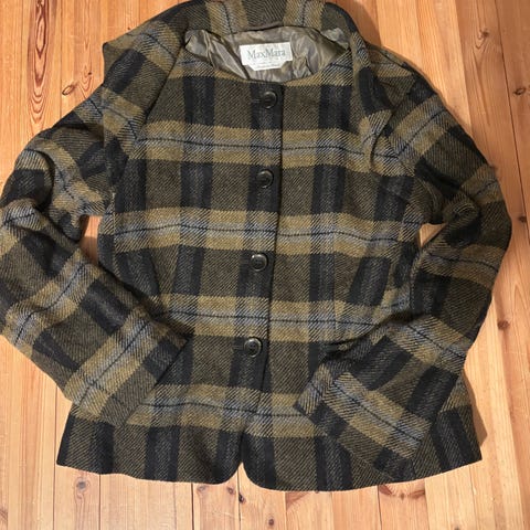 Max Mara villakangastakki naisille koossa L. Vihreäsävyinen, polvipituinen takki, jossa on vyö vyötäröllä ja nappikiinnitys edessä. Materiaalina villa. Takissa on kauluskäänteet ja pitkät hihat. Sopii käytettäväksi arki- ja siistimpänä päällystakkina viileämpiin säihin.