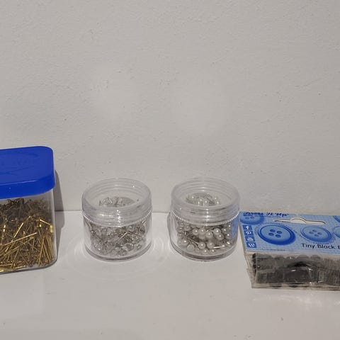 Päälystettäviä nappeja ja kuminauhoja, uusia ja hyväkuntoisia.