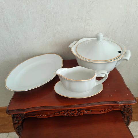 Arabia valkoinen kultareunainen astiasto