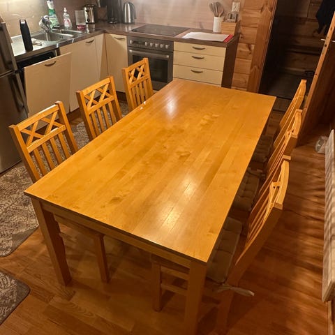 Pöydän tai tuolien kunnosta en havainnut pienintäkään moitteen sanaa, ovat kuin uudet.