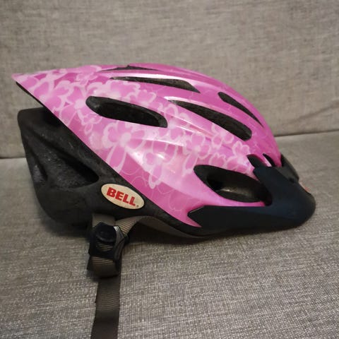 Hyväkuntoinen, päiväkoti-/alakouluikäisen päähän sopiva pyöräilykypärä. Muovilipasta puuttuu pieni pala, joka näkyy toisessa kuvassa. Lipan voi myös poistaa halutessaan kokonaan. Kypärässä on säädettävä leukahihna ja takana kiristyspanta koon säätöä varten. Vain nouto.