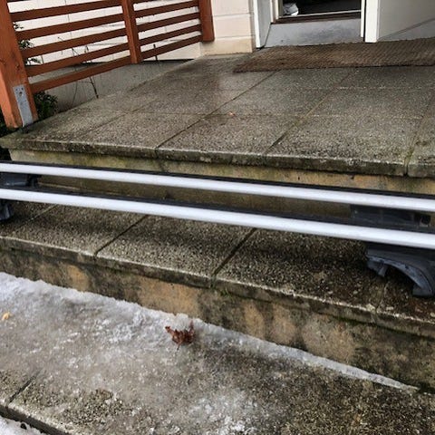 Thulen noin 30 vuotta vanhat taakkatelineet autoon, jossa on kattokaiteet. Kattokaiteen ja auton katon välinen rako tulee olla riittävän suuri (telineet ovat olleet Golf-farkussa). Kuvassa näkyvät suksipidikkeet ovat alkuperäiset, joten niiden kumiset kiristimet voivat vaatia uusimista.