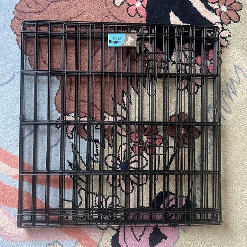 Metallinen koira-aitaus, joka koostuu useasta toisiinsa liitettävästä paneelista. Aitauksessa on ovi helpottamaan koiran sisään- ja ulosmenoa. Rakenne on kokoontaitettava, mikä helpottaa säilytystä ja siirtämistä. Soveltuu koiran rajaamiseen sisätiloissa tai suojaisassa ulkokäytössä koiran koosta ja tarpeista riippuen.