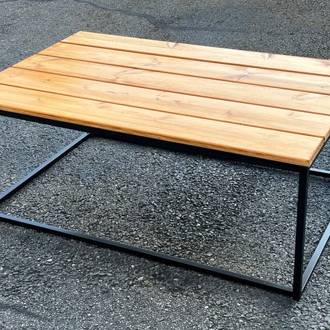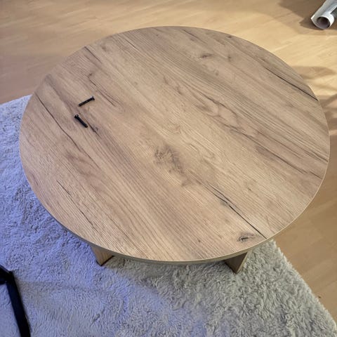 Jykevä sohvapöytä, taatusti uniikki. Lakattua koivua.