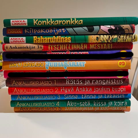 Myydään Aku Ankka -sarjakuvakirjoja vuosien varrelta. Yhteensä 7kpl, joista 6 kovakantista ja 1 pehmeäkantinen. Suurin osa hyvässä tai kohtalaisessa kunnossa. Lähinnä pientä kulumaa nurkissa jos jotain (katso kuvat).