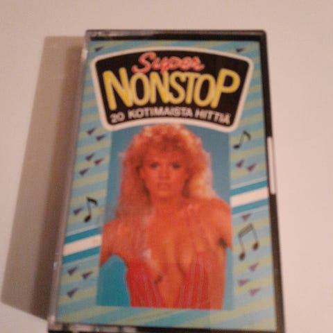 On The Road Again kasetti. Äänikasetti, jossa kokoelma kappaleita, kannessa kuvituksena rekka-autot tiellä. Sopii kasettisoittimeen tai kokoelmakäyttöön.