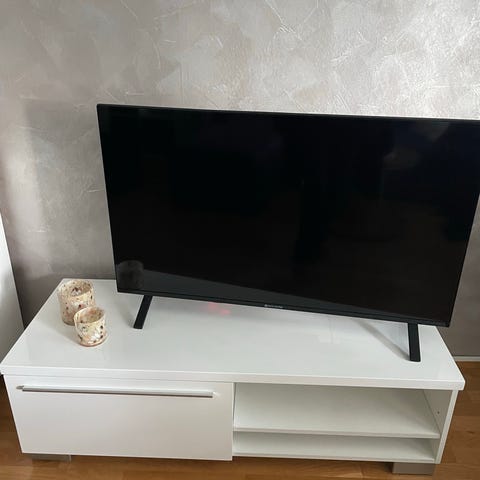 Valkoinen tv-taso, jossa kaksi isoa kaappia ja avohylly keskellä. Sopii television ja viihdelaitteiden sijoittamiseen sekä erilaisten tavaroiden säilytykseen. Moderni, suoraviivainen muotoilu ja tasainen kansitaso koriste-esineille. Linkki alkuperäiseen tuotteeseen: https://www.ikea.com/fi/fi/p/byas-tv-taso-korkeakiilto-valkoinen-80227797/?gad_source=1&gad_campaignid=19921008690&gbraid=0AAAAADzZhK9kTsDC0ptXurWJhvBaOiHt8&gclid=Cj0KCQjw37nNBhDkARIsAEBGI8OBKxU11cY3gIQ8KQ8bTgtf7A-GppVbiY3HU4RM2r-86OS4bJ0khQ0aAmKAEALw_wcB