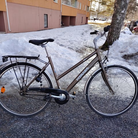 -Ohjainkannatin: A-head alumiini/musta 90 mm Grippi: Herrmans kraton Ohjainlaakeri: 1 1/8"Satula: Selle Royal Satulatolppa: Alumiini 30,4 mm Polkimet: Non-Slip-polkimet, alumiini Lokasuojat: Muovi Seisontatuki ja soittokello.