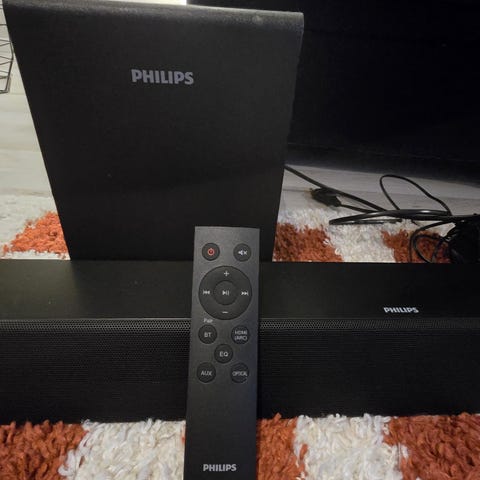 LG älytelevisio ja JVC-merkkinen soundbar ja subwoofer. Television koko 65 tuumaa. Kaukosäätimet sekä televisioon, että äänijärjestelmään. Televisio ei uusin malli, joten ei tue esimerkiksi mtv katsomoa. Kanavat kuitenkin näkyvät moitteetta ja suoratoistopalvelut saa näkyviin esim. Chromecastin avulla.