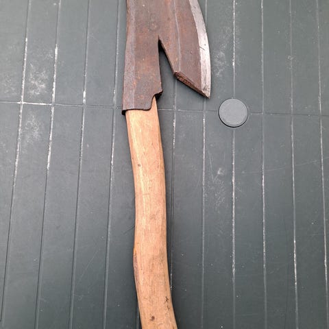 Voidaan tehdä kuvankaltainen seinäkirves tilauksena. Mukaan tulisi katajasta veistetty puukahva. Lisään siitä kuvan kunhan veistely valmistuu. Hinta on mallia tarjoa.