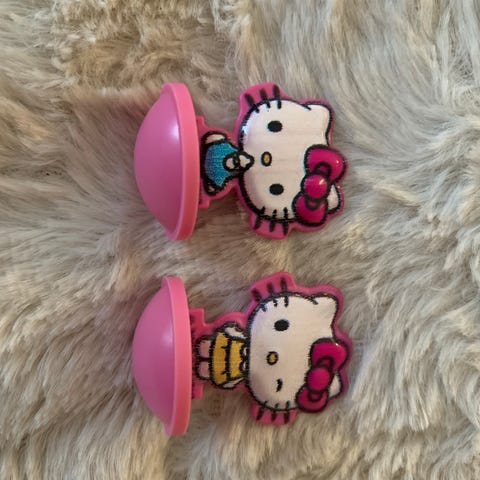 Hello Kitty muovinen lelufiguuri ja lelu. Settiin kuuluu pieni seisova Hello Kitty -hahmo sekä pieni lelu, jossa on Hello Kitty -kuva ja teksti. Molemmat osat ovat muovia. Sopii esimerkiksi lasten leikkeihin tai keräilyyn.