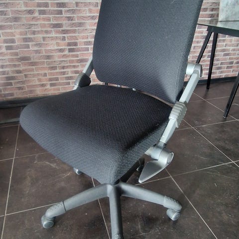 Musta toimistotuoli, jossa säädettävät käsinojat. Hyväkuntoinen. Kissatalous. Vain nouto.
