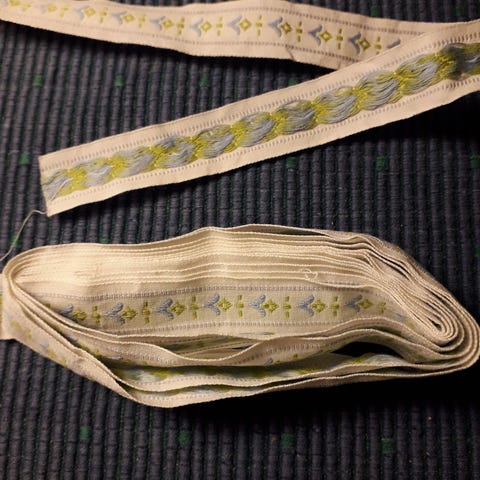 2,3 cm x 243 cm vaal.vihr/sin/valk. kaunis kangasboordi