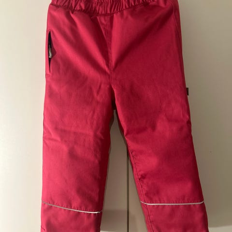 Punaiset lasten talvihousut. Takapuolen kohdalla kevyitä käytön jälkiä.