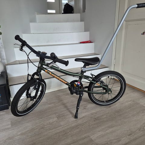 Crescent lastenpyörä 16" renkailla. Rungon ja etuhaarukan väri on musta, tehosteina keltaisia yksityiskohtia. Pyörässä on lokasuojat, ketjusuoja ja käsijarrut. Soveltuu noin 16"-kokoluokan lastenpyörää tarvitsevalle lapselle arkiajoon ja leikkimiseen.
