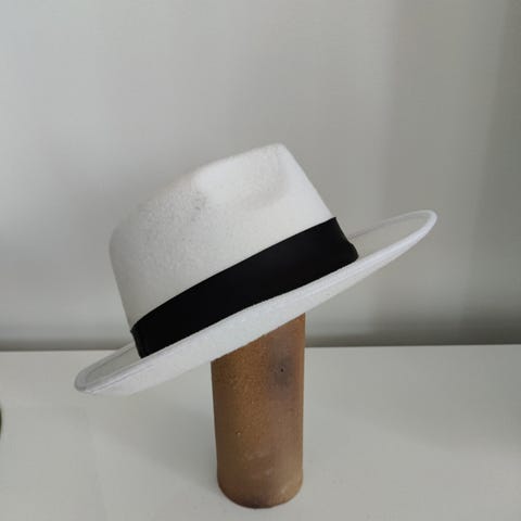 Musta, vähäniinku pork pie tyylinen hattu. Käyttämätön, merkistä ei tietoa...