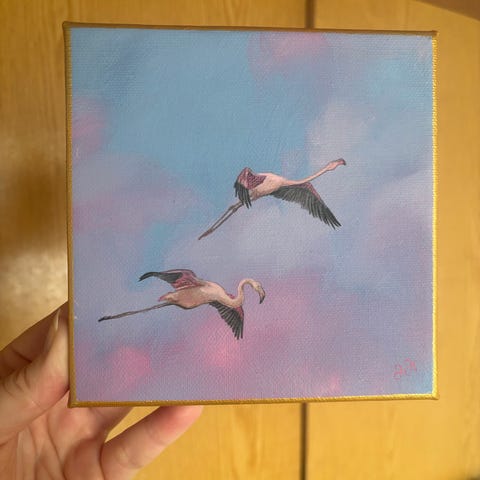 Uusi maalaus, flamingot, 30cm
