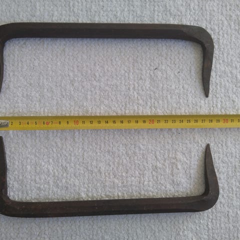 Vanhat hollihaat. Isompi noin 58cm ja pienempi noin 40 cm. Tangon vahvuus noin 2 cm. Eli ovat vahvat, ja kuten kuvista näkyy, ei lyttyyn hakatut. Hinta 20e/kpl tai 35e yhteensä. Voin myös lähettää manner Suomeen matkahuollon kautta, lisä hintaan. Haku sanoilla työkalut , remppa , työkalu , hirsityö , Hirsi rakentaminen , perinne rakentaminen, kirves , hirren veisto