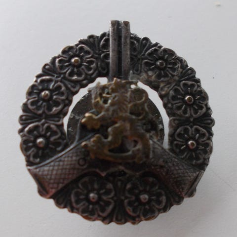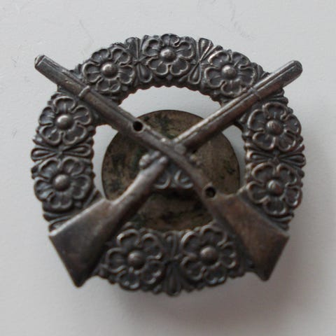 Suomen armeijan kuntoisuusmerkki ammunta, kivääri, 1 luokka. Arviolta 70-luvulta. Ruuvikiinnitys.