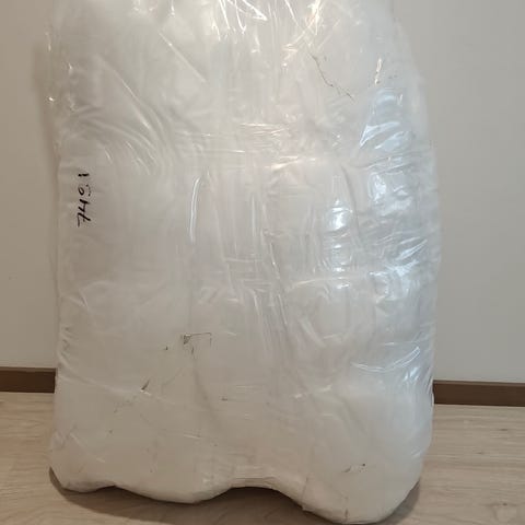 Säkillinen käyttämätöntä valkoista oletettavasti polyesterivanua. Sopii esimerkiksi tyynyjen, pehmolelujen, istuintyynyjen ja muiden tekstiilituotteiden täytteeksi. Noin 1kg, kevyesti sullottuna noin 20-25l.
