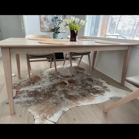 Myydään tyylikäs massiivitammi Rowico Home Filippa 4-hengen ruokapöytä. Ostettu Askosta.
