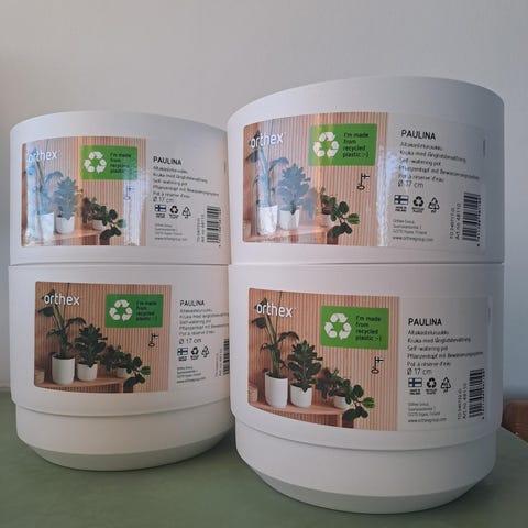 4 kpl muoviruukkua yhteishintaan. Yksi hengitysputki puuttuu.