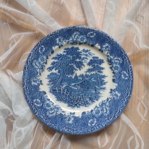 Myydään hyvännäköinen England ironstone maisema lautanen. 24,5 cm. On krakeloittunut, mutta ei kaikkialta - päällimmäisellä puolella voi, ensimmäisellä hetkellä, jäädä huomaamatta. Ei ole tummunut.