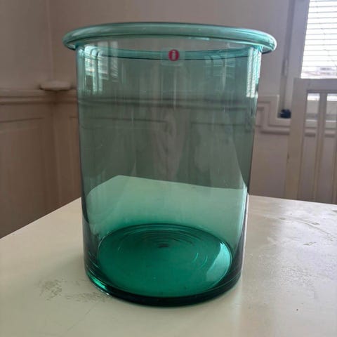 Tyylikäs maljakko ja Iittalan tarra jäljellä.