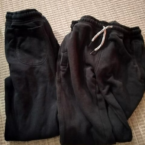 Suoralahkeiset collegehousut. Pieni haalea tahra, josta kuva.