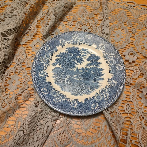 Vanha sinivalkoinen, 25 cm, England ironstone maisema lautanen