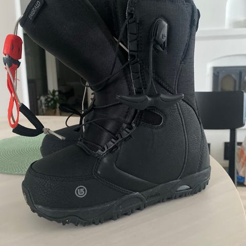 Naisten lumilautakengät musta–violetti. Kengissä on nauhakiristys.