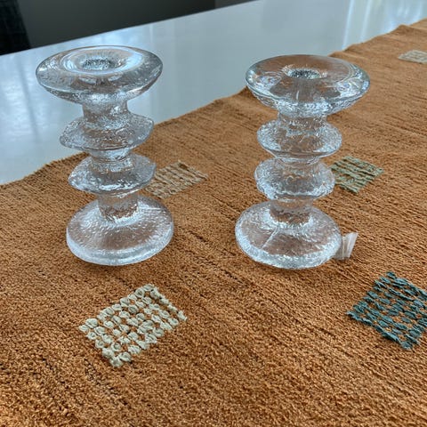 Festivo -kynttilänjalat. Ehjät, signeeratut, tarra/osittainen tarra.