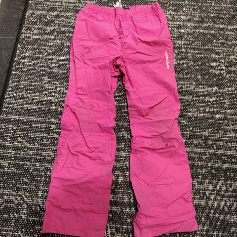 Fleecevuorilliset vedenpitävät välikausihousut. Mainiot silloin kun toppahousut on liikaa ja kuorihousut liian vähän. Meillä on ollut näitä monessa koossa (jäi tässä koossa nämä toiset täysin käyttämättä) ja on käytetty vk-housuina esim. tämän hetken säillä, kylmän kelin sadehousuina ja talven loskakeleillä tai pakkasissa liikuntaan, kun ovat paljon kevyemmät ja mukavammat liikkuessa kuin toppahousut. Liian kuumat kesällä.