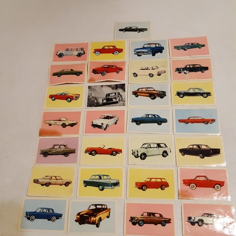 ainakin 130 kappaletta keräilykuvia purkka paketeista 1960 luvulta autoja jotain 40 kpl , beatles ,elvis bardot,näyttelijöitä laulajia yms . jokunen jotain luota /villieläin sarjaa . Tarjoa koko kasasta !