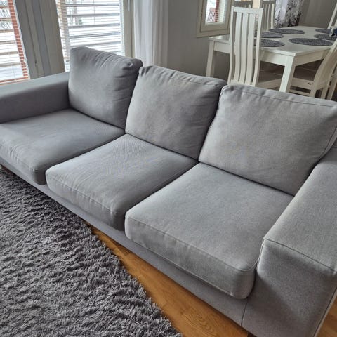Myydään lemmikkitaloudessa ollut tumman harmaa divaanisohva. Ostettu Maskusta ja merkiltään Bellus. Kohtalaisessa kunnossa oleva. Kankaat ehjät ja runko kunnossa. Käytön jälkiä on, mutta ei tahroja. Tästä vielä hyvä sohva esimerkiksi mökille tai opiskelijalle. Leveys 235 cm ja divaani 195 cm. Vain nouto.
