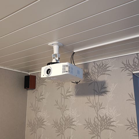 Short Throw tykki eli tuottaa jopa yli 100" kuvan ihan seinän vierestä.